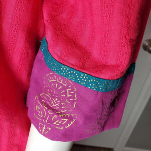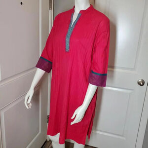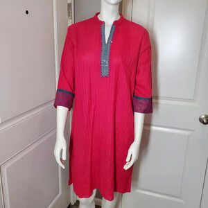 Beautiful Fuscia Cotton Kurti Tunic Sequin Embellished Women's Size XL 101cm
