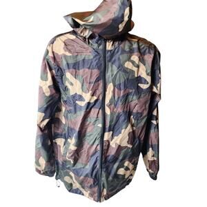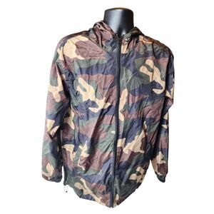 Beautiful Giant Camo Windbreaker Jacket Mens Medium Zip Up Hooded Lightweight