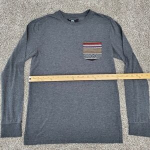 Beautiful Giant Mens Gray Long Sleeve Shirt w/ Multicolor Pocket Size Small