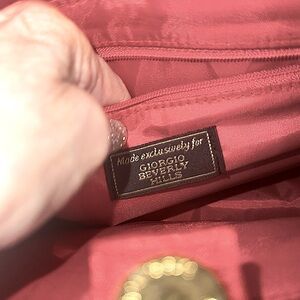 This mini bag by Giorgio Beverly Hills perfect for adding a pop of color to any outfit. Its compact size and structured design make it an ideal accessory for both casual and formal occasions. The gold-tone hardware adds a touch of sophistication to its modern aesthetic.