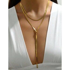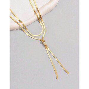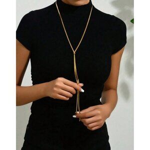 This beautiful gold colored long necklace is made from high-quality stainless steel. It's an elegant, durable accessory, perfect for every day wear or special occasions.
