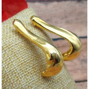 Beautiful Gold Tone Drop Earrings "J" Shaped 1.5" Pierced Elegant Career