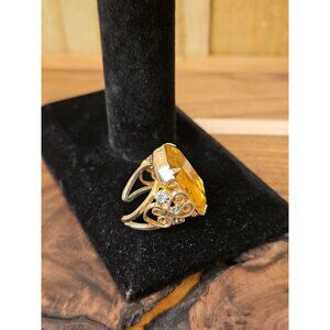 Beautiful Gold Toned and Crystal Split Shank Ring. Gently used preowned vintage condition. Please see pictures for details. ;