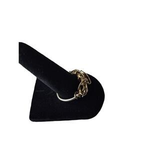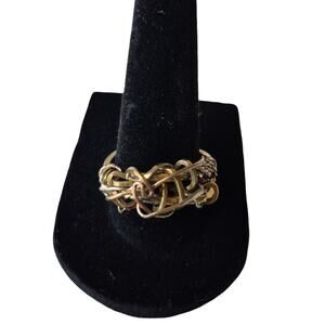 This beautiful gold brass tone ring is a timeless piece of jewelry that exudes elegance and sophistication. The sleek design and luxurious color make it a versatile accessory that can elevate any outfit. With a ring size of 8.5, it is a comfortable and stylish addition to any jewelry collection. Perfect for those who appreciate beauty and quality craftsmanship.