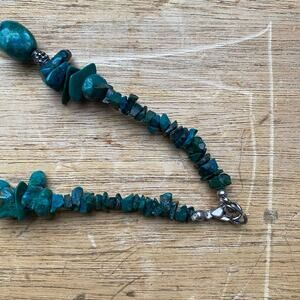 Beautiful Graduated Turquoise Nugget and Chip Bead Choker Necklace 17” Bohemian