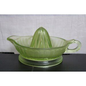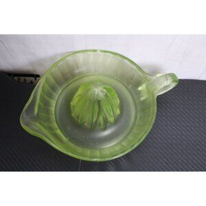 What you are purchasing today is a beautiful Green Glass Vintage Juicer that adds a touch of elegance to your kitchen. Perfect for juice extraction or as a decorative piece, it captures the charm of vintage design. Glows with blue light!