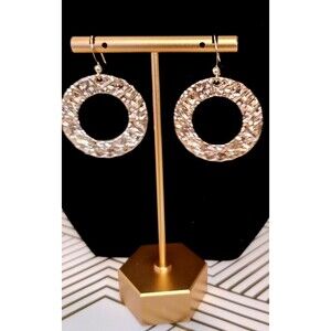 Beautiful Hammered Open Hoop Earrings Gold Tone Round Dangle Women