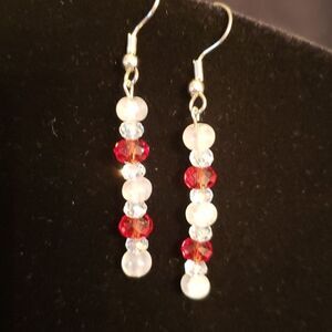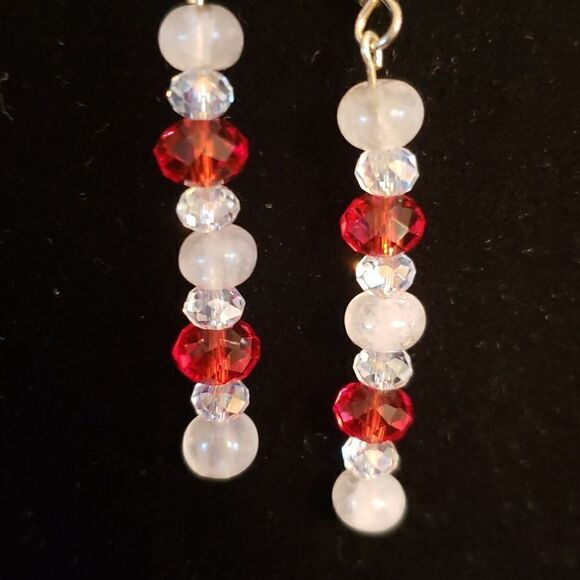 Beautiful Hand-Crafted Red and White Drop Earrings 2.25"
