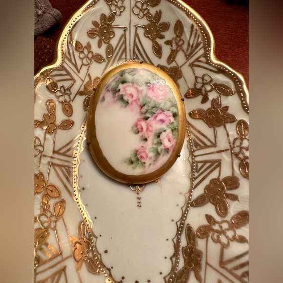 Beautiful Hand-Painted Roses Porcelain Brooch