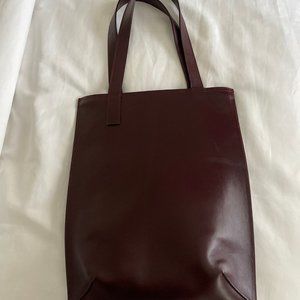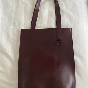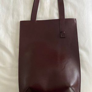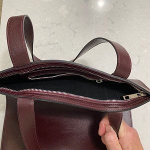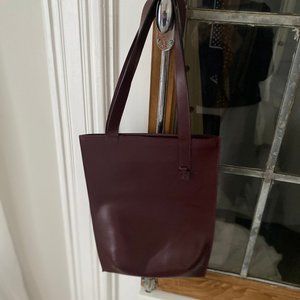 Acquired on a trip to Budapest, this bag is beautifully finished in deep burgundy. Measures about 11.5 "x 14", with a slight inside taper from bottom to top. Made by hand in Hungary.