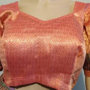New , never worn Handloom Cotton Silk Saree with Stitched blouse - Peach Pink..Beautiful Fine quality, Crisp cotton-silk saree with stitched blouse. Fall and pico work done.Comes With a Stitched Blouse with removable pads Chest size 40....Princess cut style with side zip and tassels.