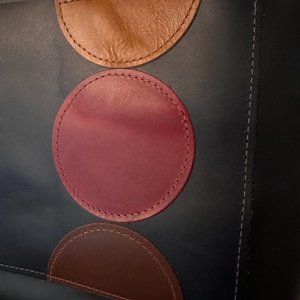 This is a brand-new leather tote from In Blue Handmade's limited 'abstract leather tote' line. It is new, right out of the package, and has never been used.
