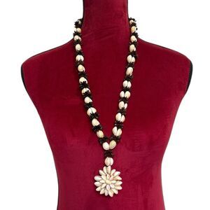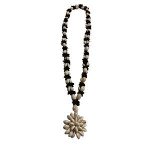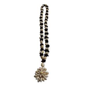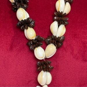 Beautiful Handmade Cowrie Seashell Shell Koa Seed Lei Statement Necklace