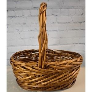 Beautiful Handwoven Willow Basket 12" long x 6" deep x 16" handle Height