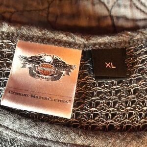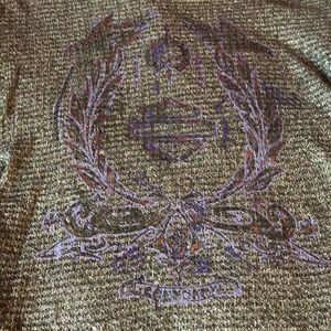 Harley-Davidson open knit front top sz XL. Silver metallic treading with purple silver & black design on front. Great condition