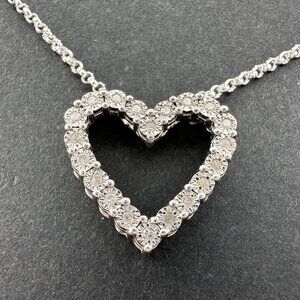 Simple yet beautiful heart necklace. Heart made of Small natural diamonds in illusion settings. .925 sterling silver. Includes 18" Sterling Chain.