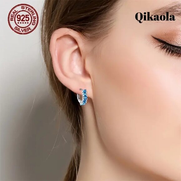 The delicate hoops hug the earlobe comfortably, making them perfect for everyday wear or special occasions. The blue zircon stones are set in a secure prong setting, ensuring they catch the light beautifully from every angle.