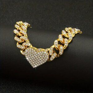 Perfect for elevating any ensemble, this heavy Cuban bracelet with its iced-out heart charm embodies opulence and refined elegance.
