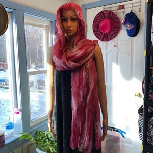 Beautiful Indian Scarf Size L84”xW35” Sequin Bead Embroidery