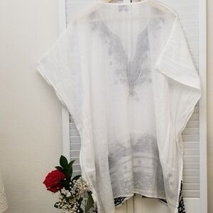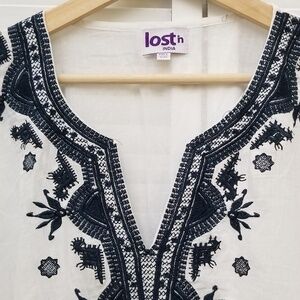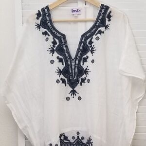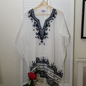 White and Blue color tunic women's dress. Beautiful to wear for the beach. 100% cotton made in India.