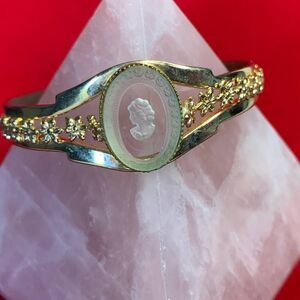 Beautiful cameo set in an adjustable cuff with flowers adorning the band