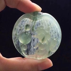 The round pendant which showing a lovely goldfish swimming in a lotus pond. The back of the pendant is shape of lotus leaf. The size if the beauty is 47.5*47.3*10.9mm.