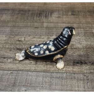 Beautiful Jeweled trinket box baby seal enamel in box excellent condition