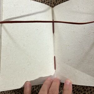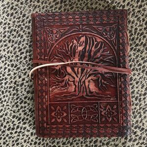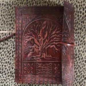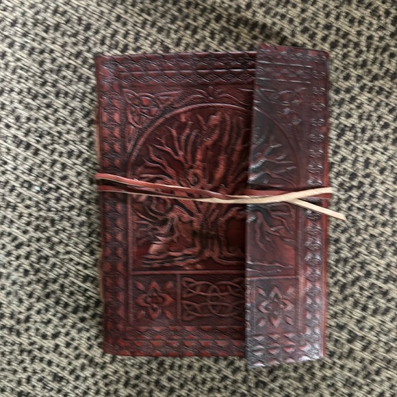 Leather look 7x5.5. Fold over flap and tie closure. Parchment heavy weight flexed paper. Perfect gift.