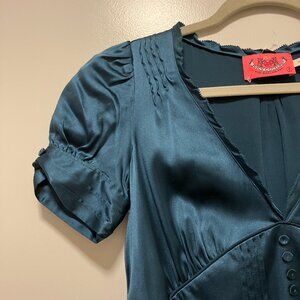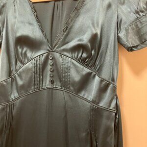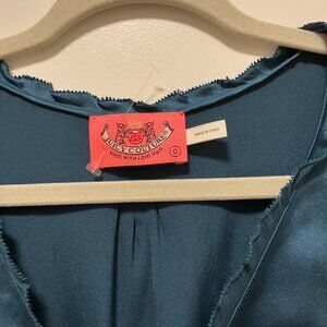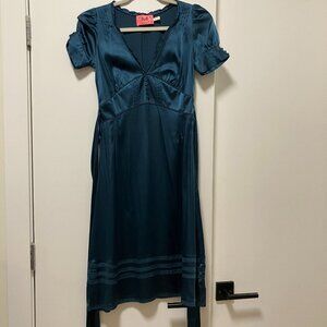 Beautiful Juicy Couture Women's Turquoise Silk Dress with Sash, Size XS (P). Really stunning piece- beautiful silk - a few small pulls and little spots (that likely would come out at dry cleaner) but barely noticable when on and in great shape otherwise.