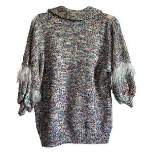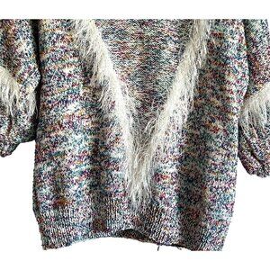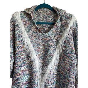 Beautiful Knit Sweater Multicolor Fringe Detail Collar Warm Cozy