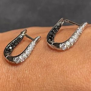 Beautiful Lab Created Black & Clear Diamonds Earrings