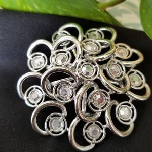 It is in excellent used condition with no signs of wear. Silver and rhinestones and certainly makes a statement!!! Diameter of 2.75"