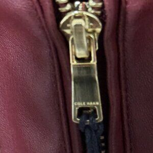 This is a stunning, brand-new Cole Haan jacket, designed to offer a luxurious leather look without the animal product. Perfect for adding a sophisticated touch to your wardrobe.
