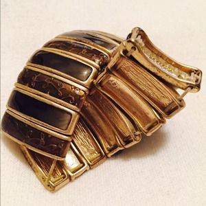 This Lia Sophia stretch bracelet is gold tone with a unique design done in Browns. (Some look more black, but this is a nice chocolate brown!) Only wore it a couple of times, received many compliments, and is in GREAT condition!