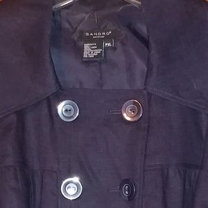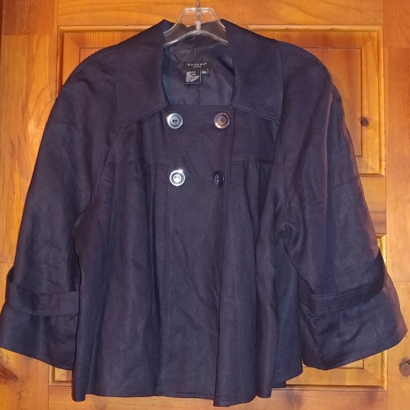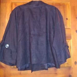 Button front. Short jacket. Long loose sleeves. Hard to find linen jacket. Dark navy color.