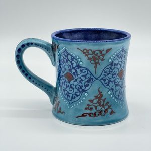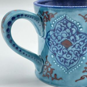 Beautiful Manna Pottery Turquoise Blue Hand Painted Coffee Mug Cup 12 oz Signed