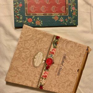 Vibrant blue with red and other colors in pattern. Has original box (marked it as having tags) which is a little worn where it opens. other than that, wonderful and never used!
