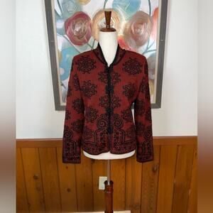 This coat is so pretty! I love the frog toggle closures! Great condition! Bust measures 38”, length is 23”