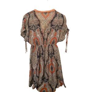 Beautiful Miss Me Summer Dress Short Sleeve w/ Tassels Partial Sheer Multicolor XS in great pre-owned condition-please see all photos