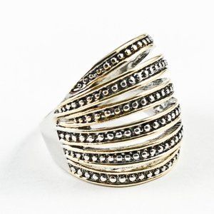 Multi Row, Micro Bead, Open, Two Tone Style Ring.
