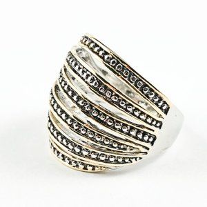 Beautiful Multi Row Micro Bead Open Two Tone Ring