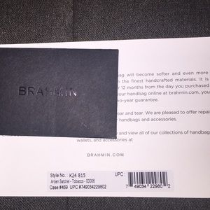 Authenticity Brahmin Registration Card** Brahmin Carlisle Collection Arden Satchel Tobacco Brahmin's Crème Carlisle Collection is a luxurious combination of textures and patterns. This absolutely stunning Arden satchel features, brown and black smooth leather trim and exotic glossy snake-embossed center front and back panels. Lightly worn, includes dust bag and registration card.