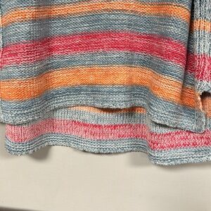 Beautiful Multi-Color Stripe Loose Knit Sweater , L, Hi-Lo hem