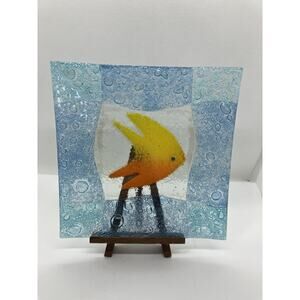 Beautiful Multicolored Stained Fuse Glass Trinket Dish Colorful Fish 7” X 7”