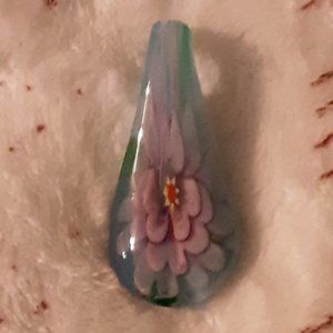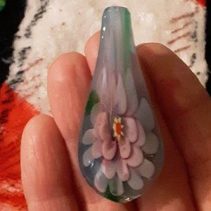Beautiful Murano Glass Pendant Blue Floral Layers of Flowers New No Chain