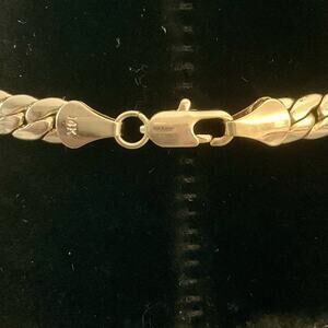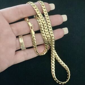 This product is a solid 20” Cuban link chain crafted from 14k gold over sterling silver. The chain features a lobster closure and is versatile for various occasions such as anniversaries, birthdays, and Valentine's Day. Its stylish design makes it suitable for those looking for a piece of jewelry that exudes beauty and love. Additionally, the chain is reversible and stackable, offering flexibility in styling options.
