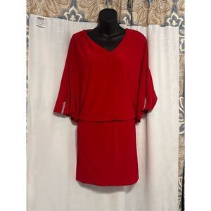 Beautiful NEW WITH TAGS 1990s Cache Red Satin Batwing Cutout Draped Dress XS