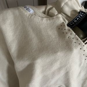 Size M Carmen ladies beige sweater with studded sleeves. Great look with Bagatelle faux leather pants available in my Poshmark closet