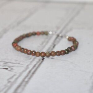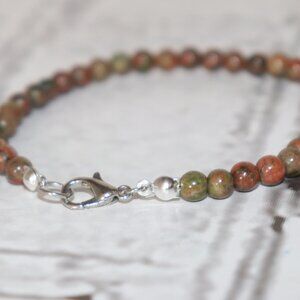 Beautiful NWoT Natural stone and silver Unakite bracelet 7.5"