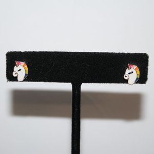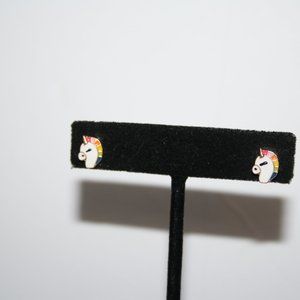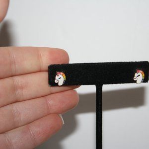 This is a beautiful pair of new without tags gold tone unicorn earrings. Adorable rainbow on the unicorn. The earrings are 3/8" tall. Post for pierced ears.